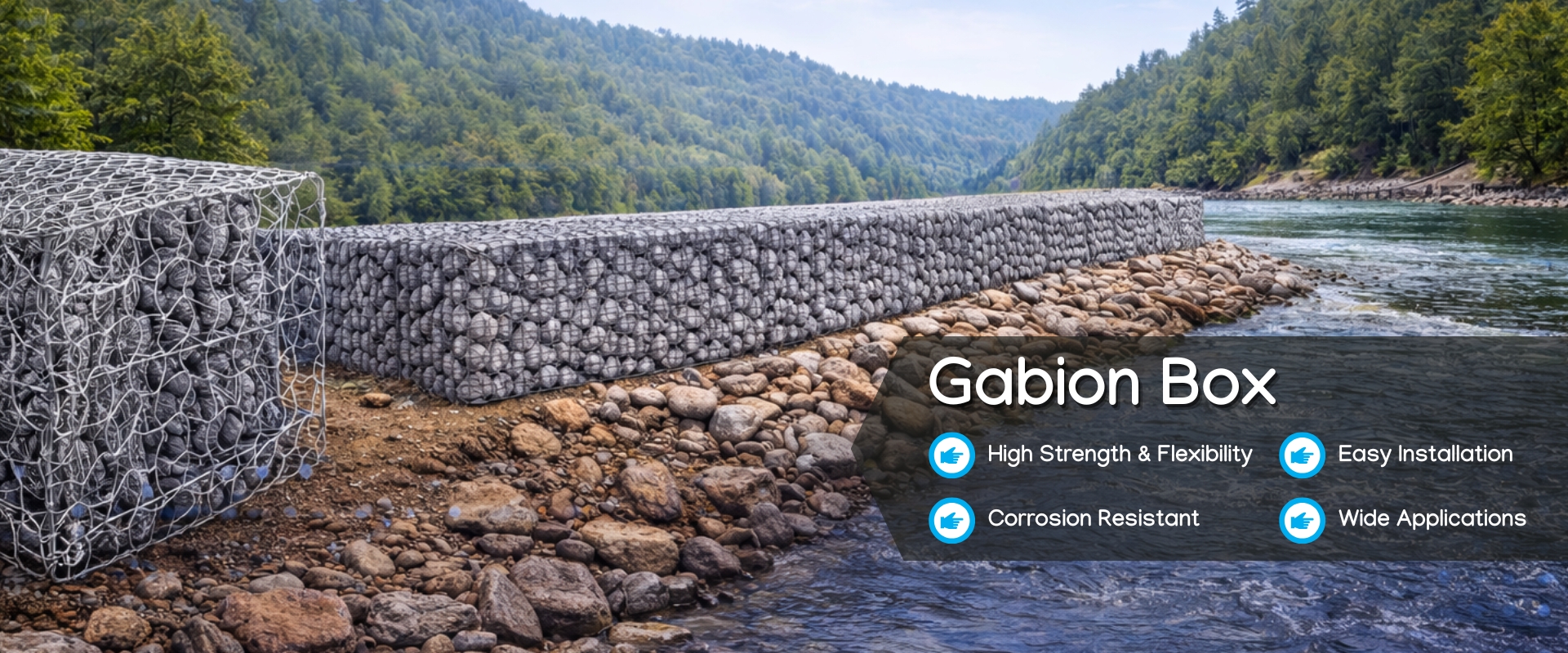 Our proficiency encompasses traditional hexagonal mesh gabion boxes as well as cutting-edge welded gabion systems, all made with high-quality galvanized, PVC-coated, and Galfan wires to ensure optimal durability and resistance to corrosion.
